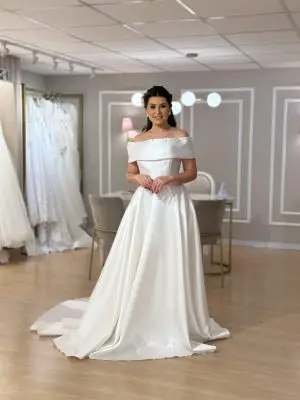 Vestido de noiva princesa, de zibeline, ombro a ombro. Opção elegante para o seu dia tão especial. Na Rose’s Noivas … Read More