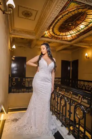 Vestido de noiva elegante, sereia, com delicadas rendas e cauda. Na Rose’s Noivas você encontra essa e outras opções de … Read More