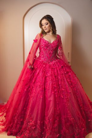 Vestido de debutante rosa, possui uma capa lindíssima e aplicação de flores em 3D. Esse modelo também possui LED, em … Read More