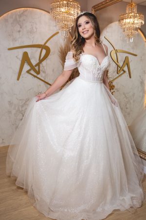Nosso vestido Sara, é uma opção lindíssima, com mangas removíveis, na cor branca, incrível para uma debutante que busca uma … Read More