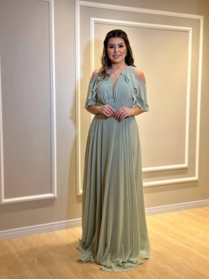Vestido longo, na cor verde, de musseline, um tecido delicado e leve. Na Rose’s Noivas, você encontra uma ampla variedade … Read More