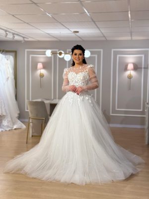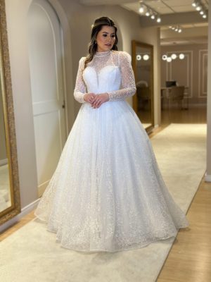 Vestido de noiva princesa, manga longa, corpo bordado e saia de tule. Na Rose’s Noivas você encontra essa e outras … Read More