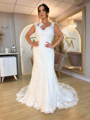 Lindíssimo vestido de noiva sereia, em renda, decote coração com cauda. Na Rose’s Noivas você encontra essa e outras opções … Read More