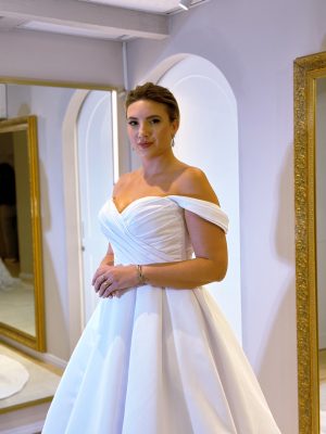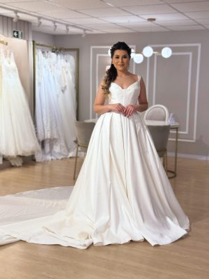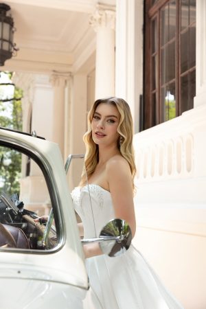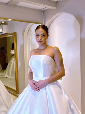 Uma verdadeira obra de arte … design minimalista com aplicações sutis em pérolas, saia princesa … um clássico repaginado.