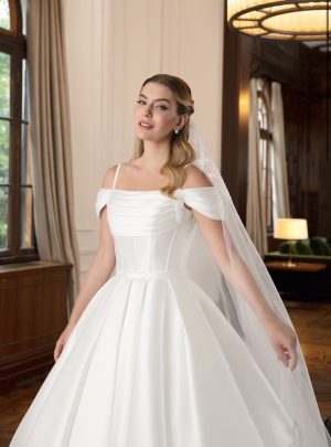 Vestido de noiva princesa, de zibeline, ombro a ombro. Opção elegante para o seu dia tão especial. Na Rose’s Noivas … Read More