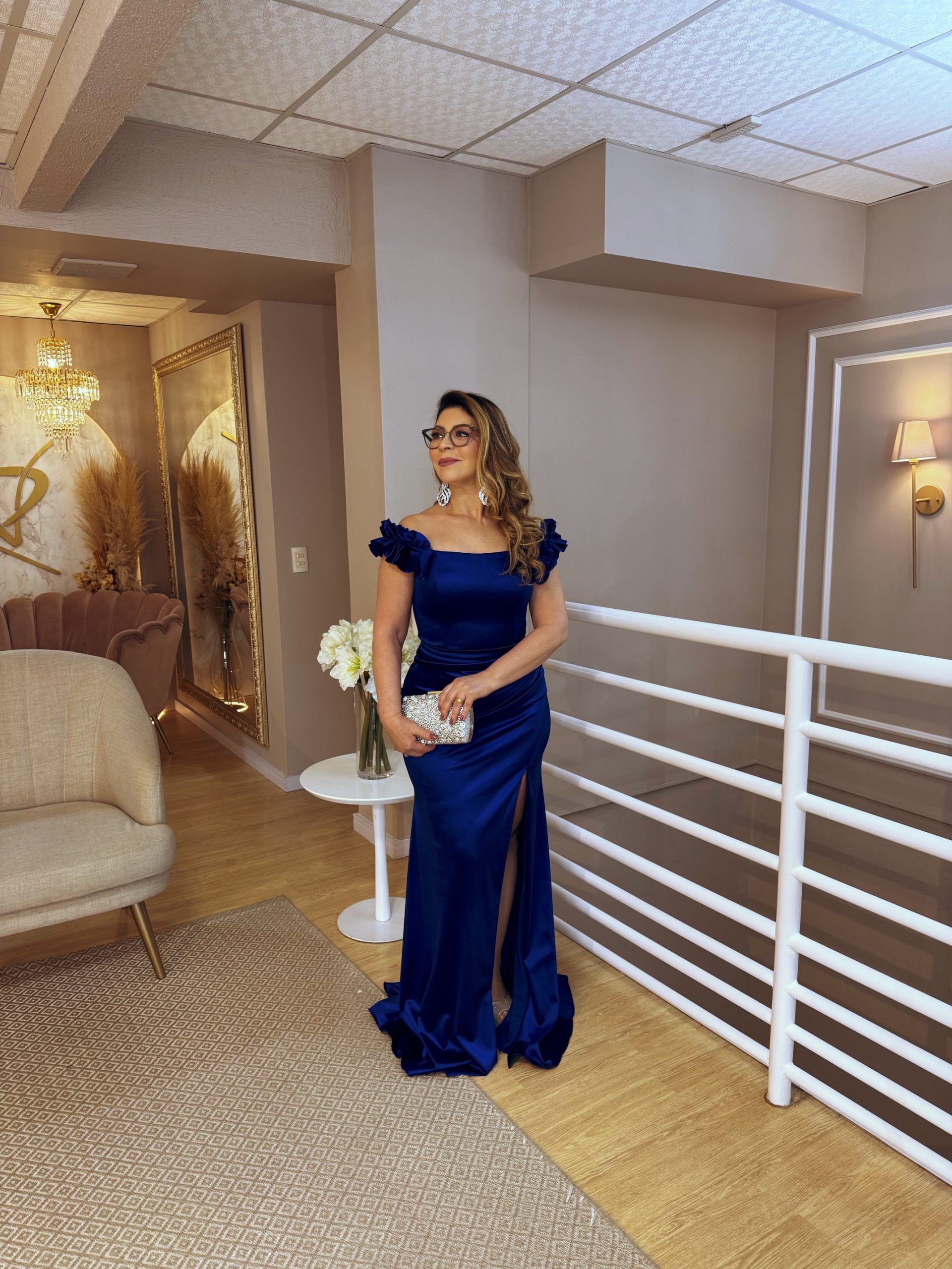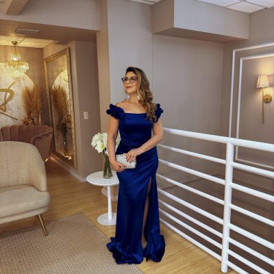 Vestido azul de zibeline, moderno, com fenda. Na Rose’s Noivas, você encontra uma ampla variedade de modelos e tamanhos. Agende … Read More