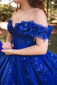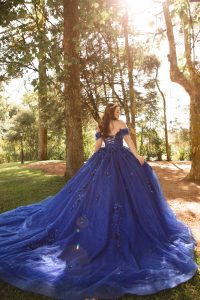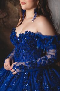 Essa é uma opção azul bic deslumbrante. Seu brilho e os delicados detalhes em flores 3D, da mesma cor do vestido, trazem toda a magia que você merece no seu grande dia. O vestido Diana acompanha capa, luva e brincos oferecendo infinitas possibilidades de uso, para que você arrase.