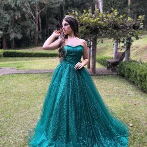 Vestido de debutante, na cor prata, com muito brilho! Digno de uma verdadeira princesa que busca brilhar muito na sua … Read More