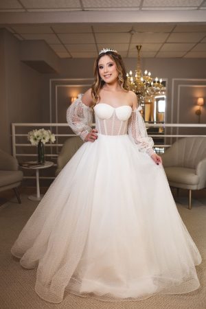 Nosso vestido Sara, é uma opção lindíssima, com mangas removíveis, na cor branca, incrível para uma debutante que busca uma … Read More