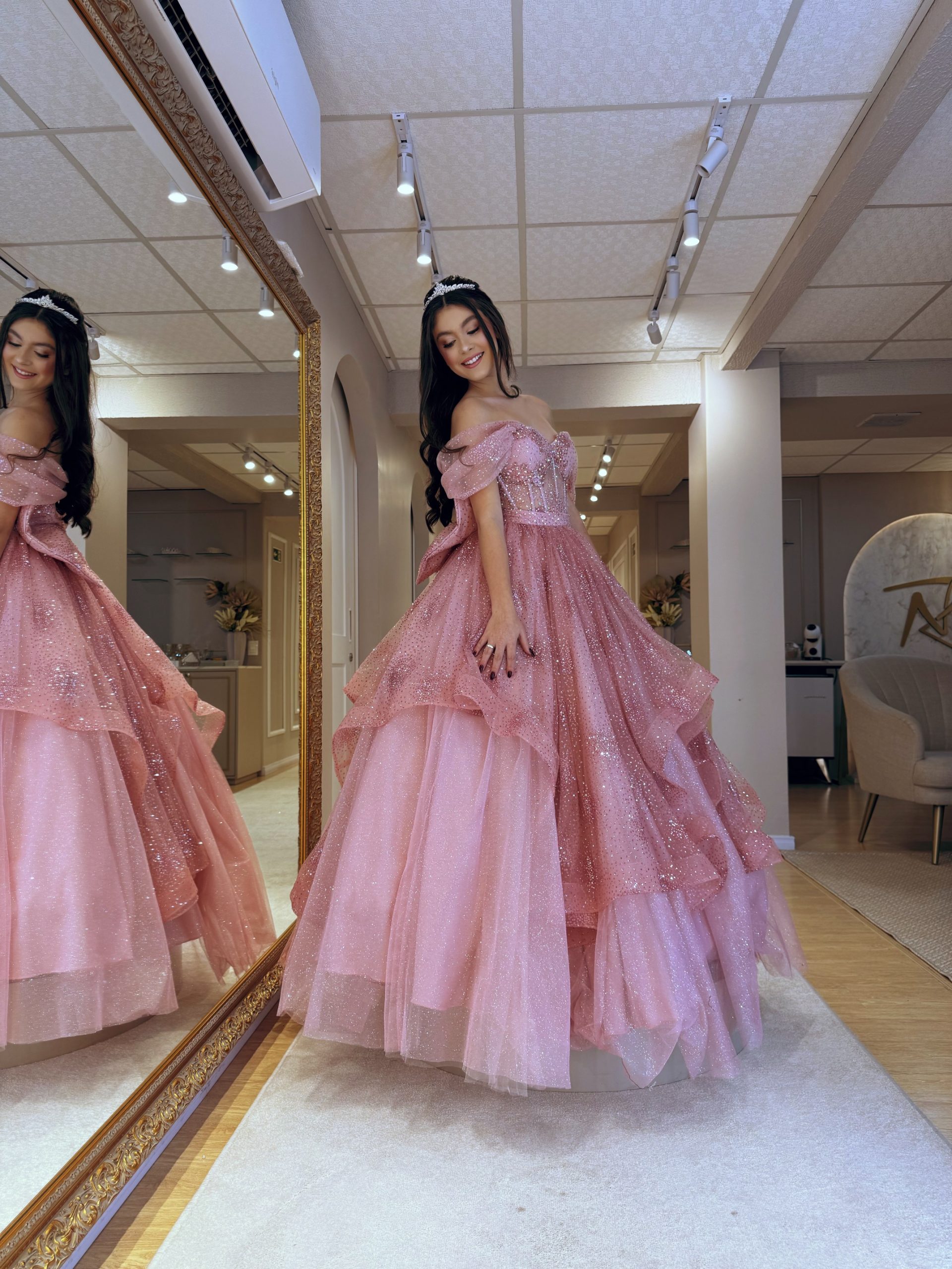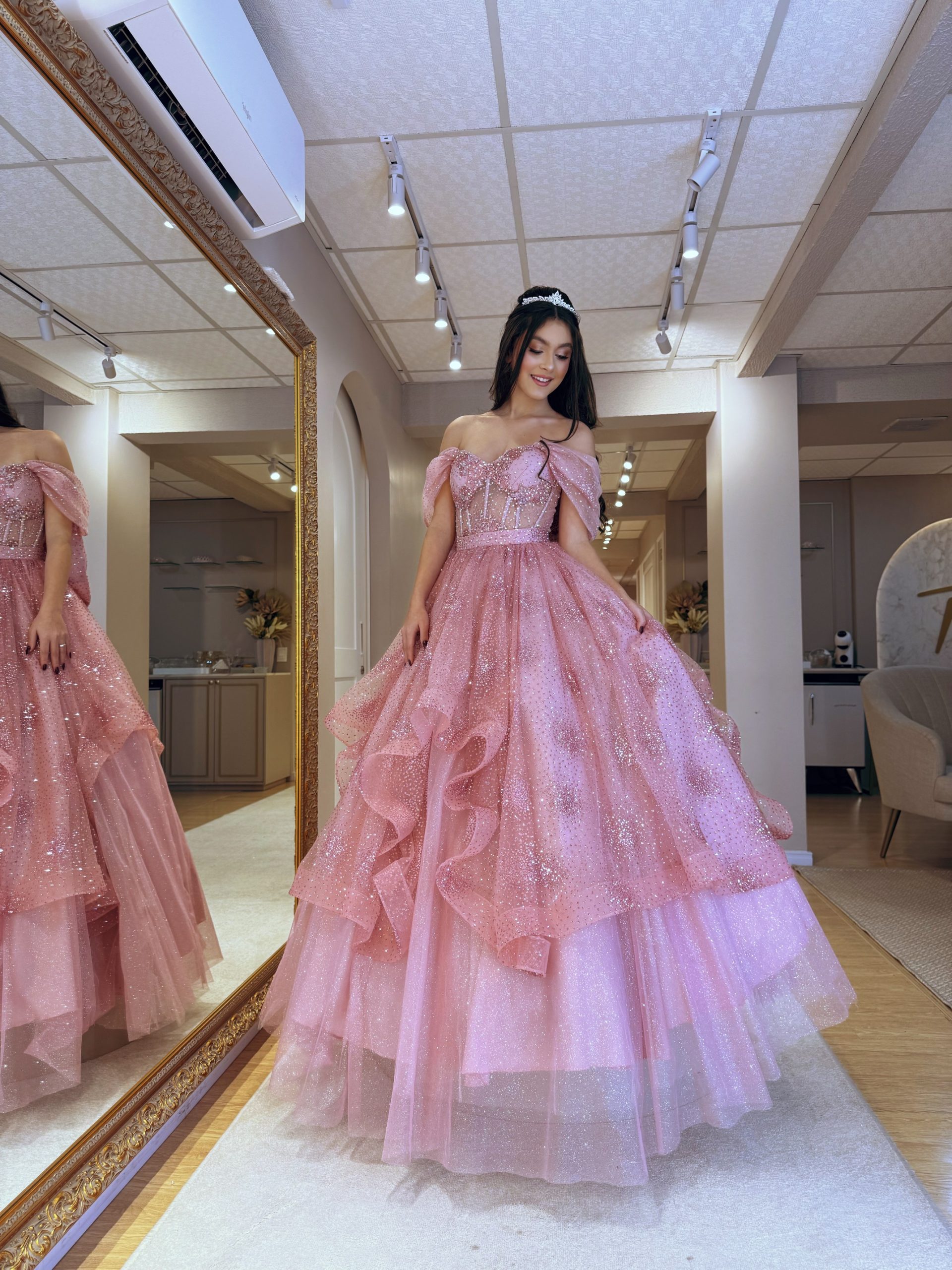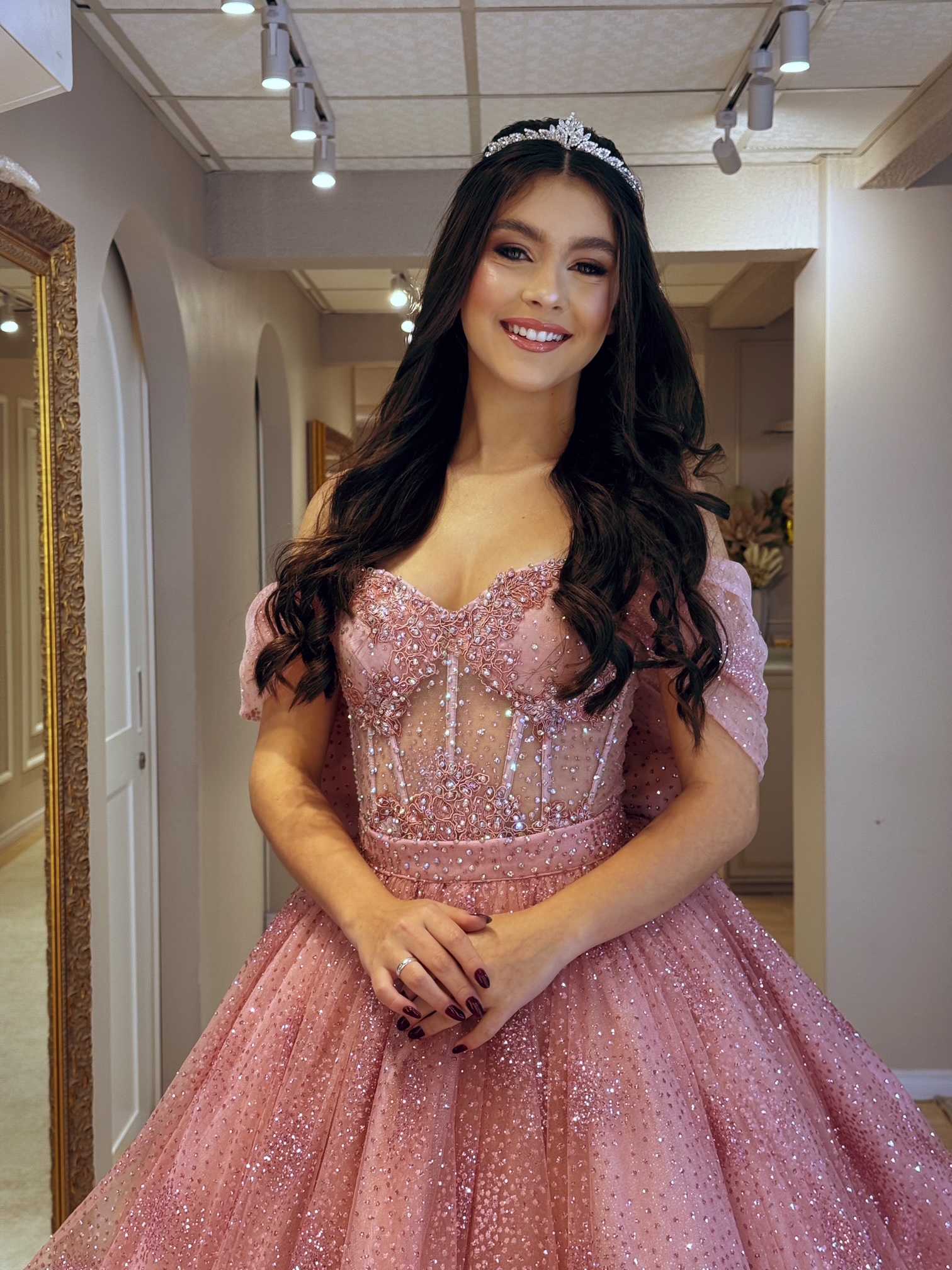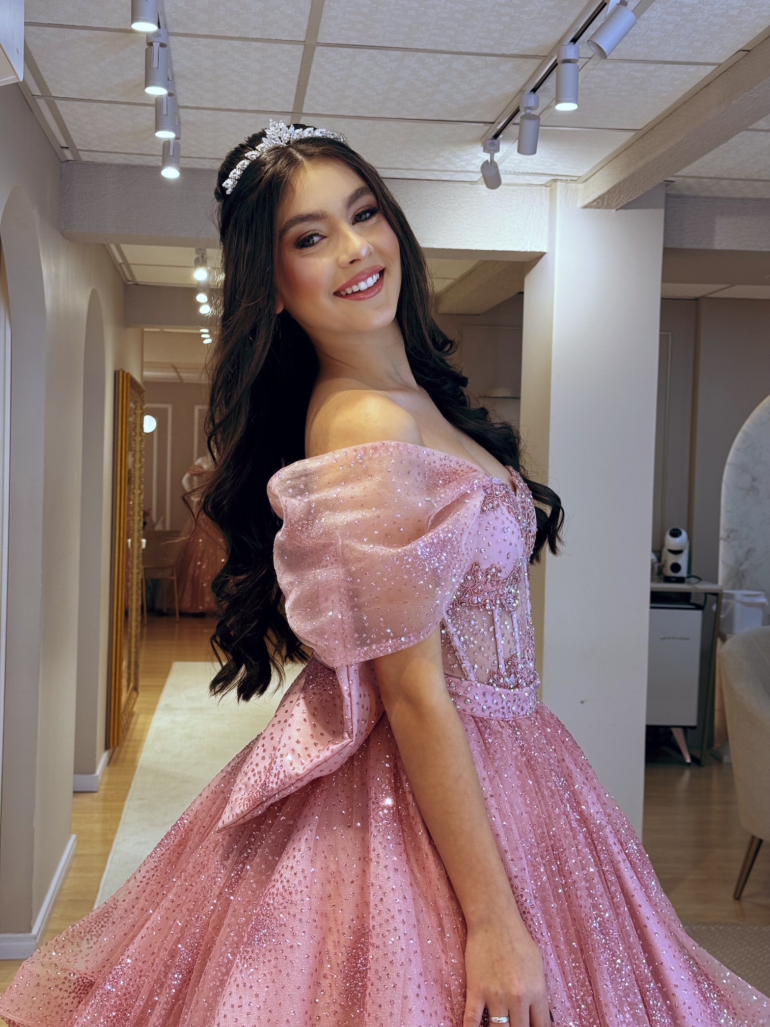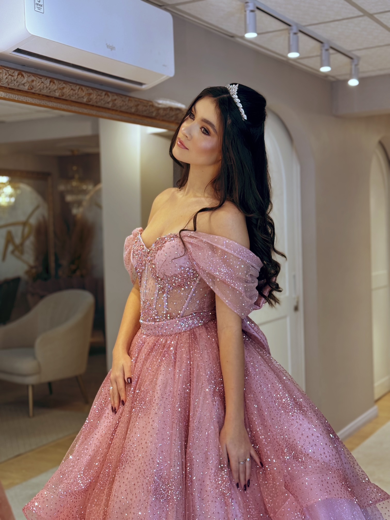 Um suspiro em forma de vestido … em rosê suave, corte clássico princesa com um toque romântico e pontos de luz que exaltam ainda mais a beleza e o encantamento dessa peça.