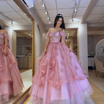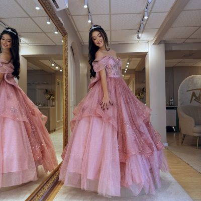 Vestido de debutante da Coleção Fadas. Rosa com pedrarias por todo o vestido e flores aplicadas no topo que garantirá … Read More