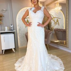 Lindíssimo vestido de noiva sereia, em renda, decote coração com cauda. Na Rose’s Noivas você encontra essa e outras opções de vestido de noiva.
