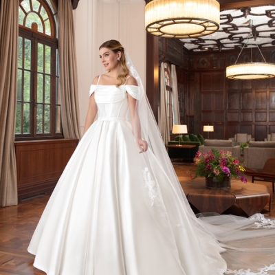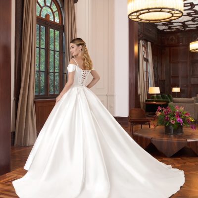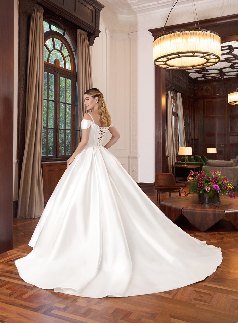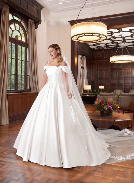 Vestido de noiva princesa, de zibeline, ombro a ombro. Opção elegante para o seu dia tão especial. Na Rose’s Noivas … Read More
