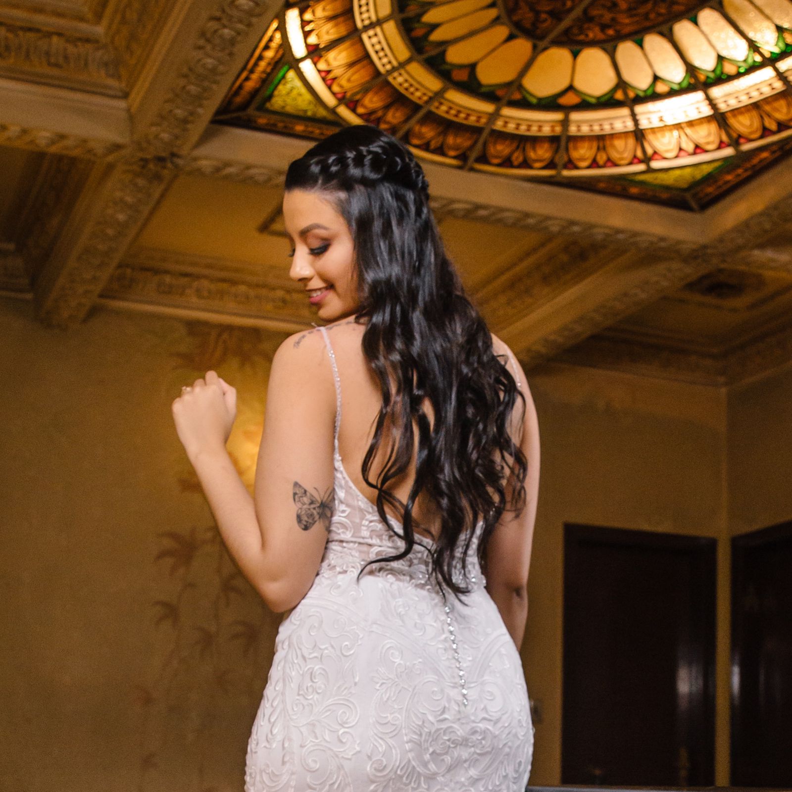 Em tom marfim … com corset estruturado, bordados delicados e mangas removíveis em tule ilusion. Elegante e romântico !
