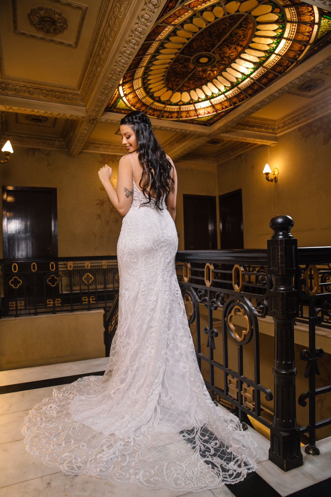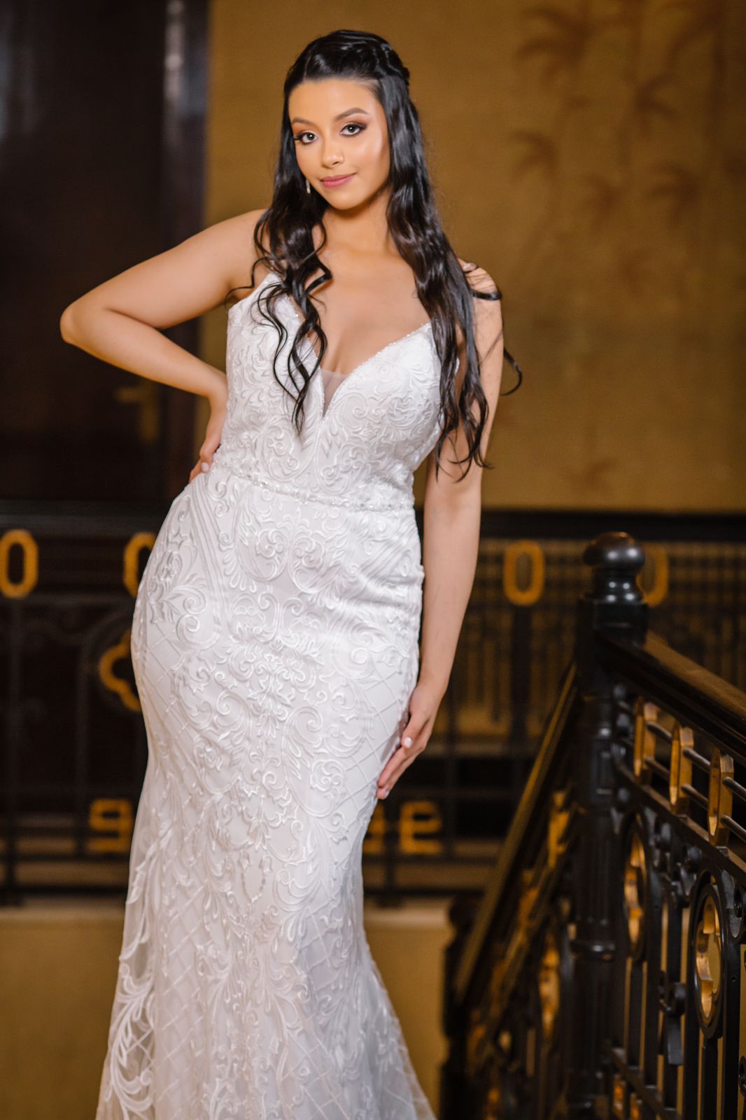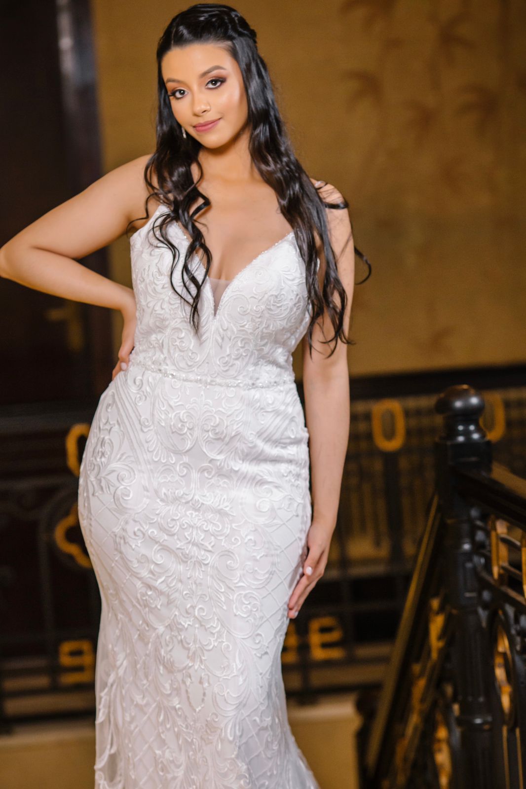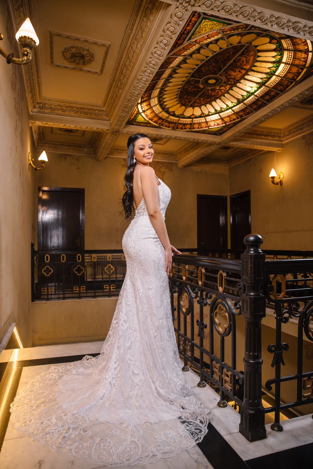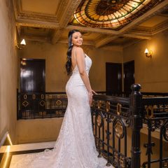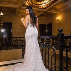 Vestido de noiva elegante, sereia, com delicadas rendas e cauda. Na Rose’s Noivas você encontra essa e outras opções de vestido de noiva.