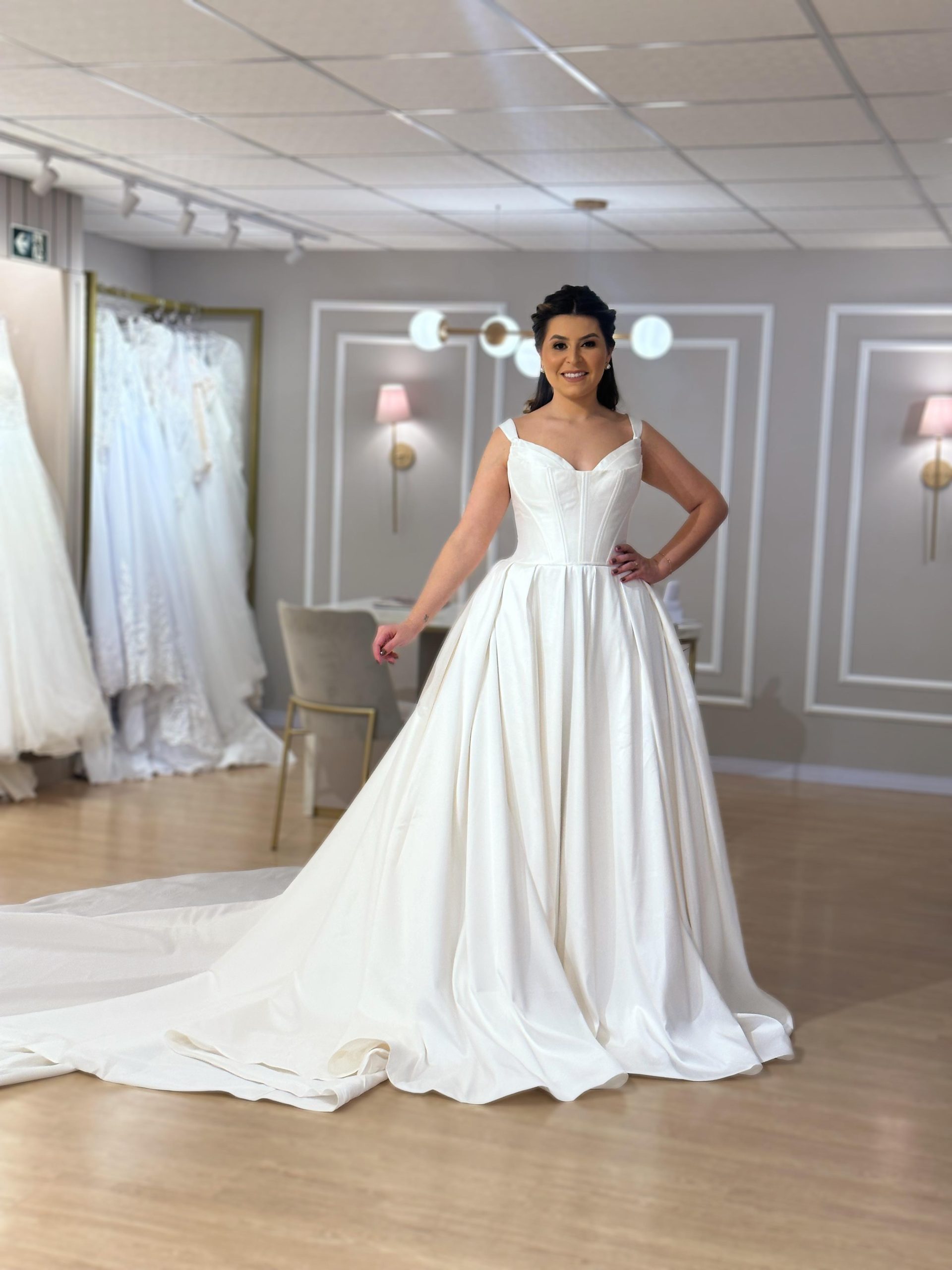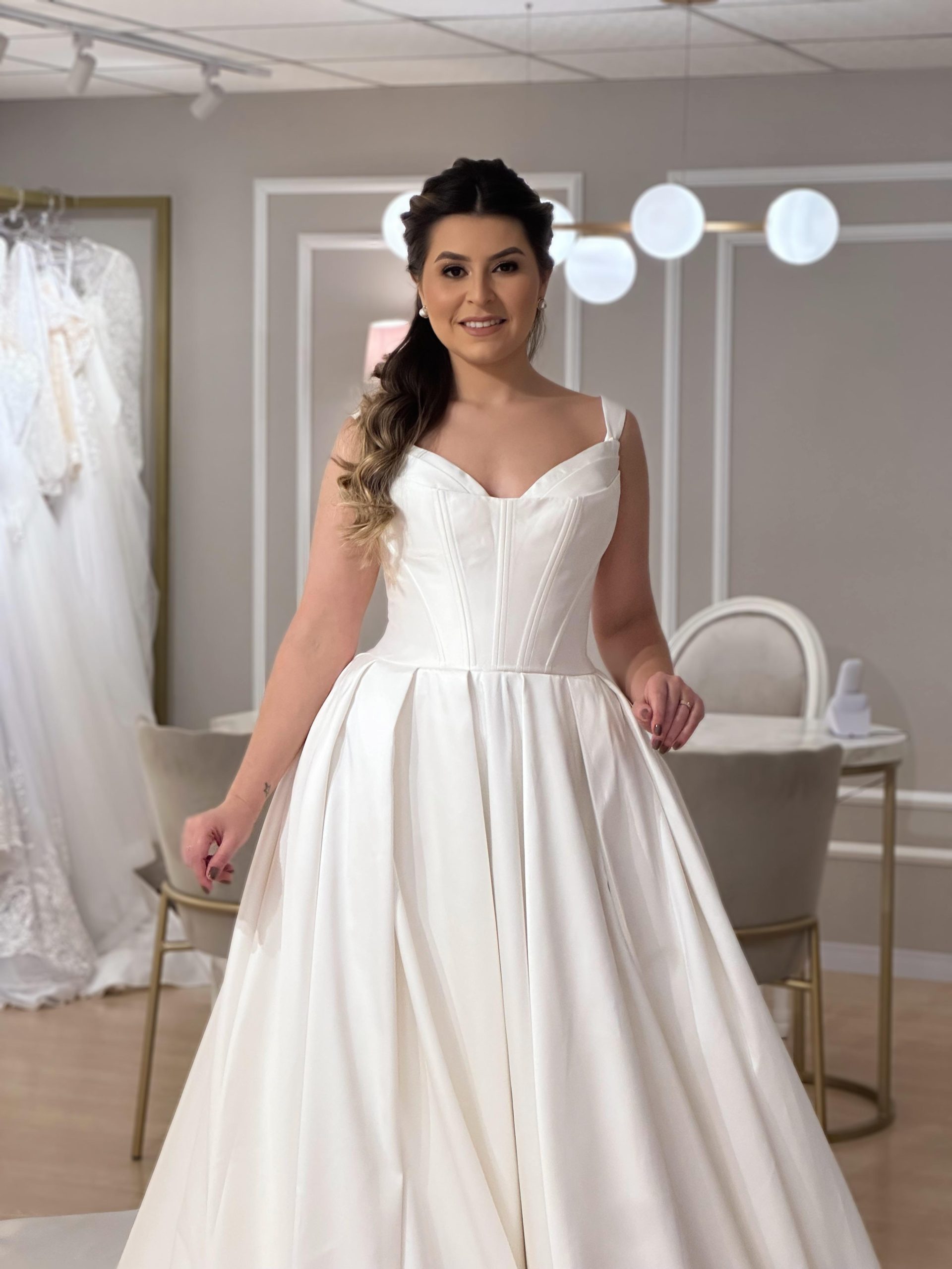Nosso vestido Sara, é uma opção lindíssima, com mangas removíveis, na cor branca, incrível para uma NOIVA que busca uma … Read More
