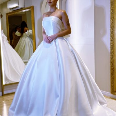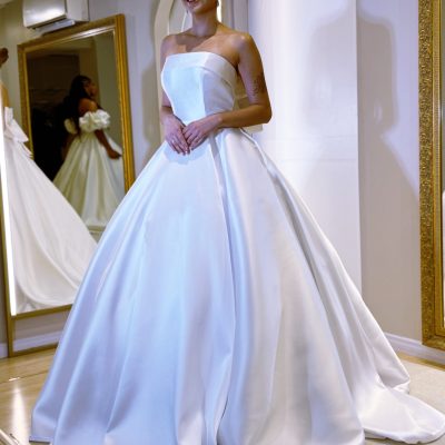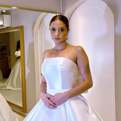 Vestido Tomara que caia em Micado, uma proposta romântica e refinada. Perfeito para Noivas que desejam um visual limpo, mas … Read More