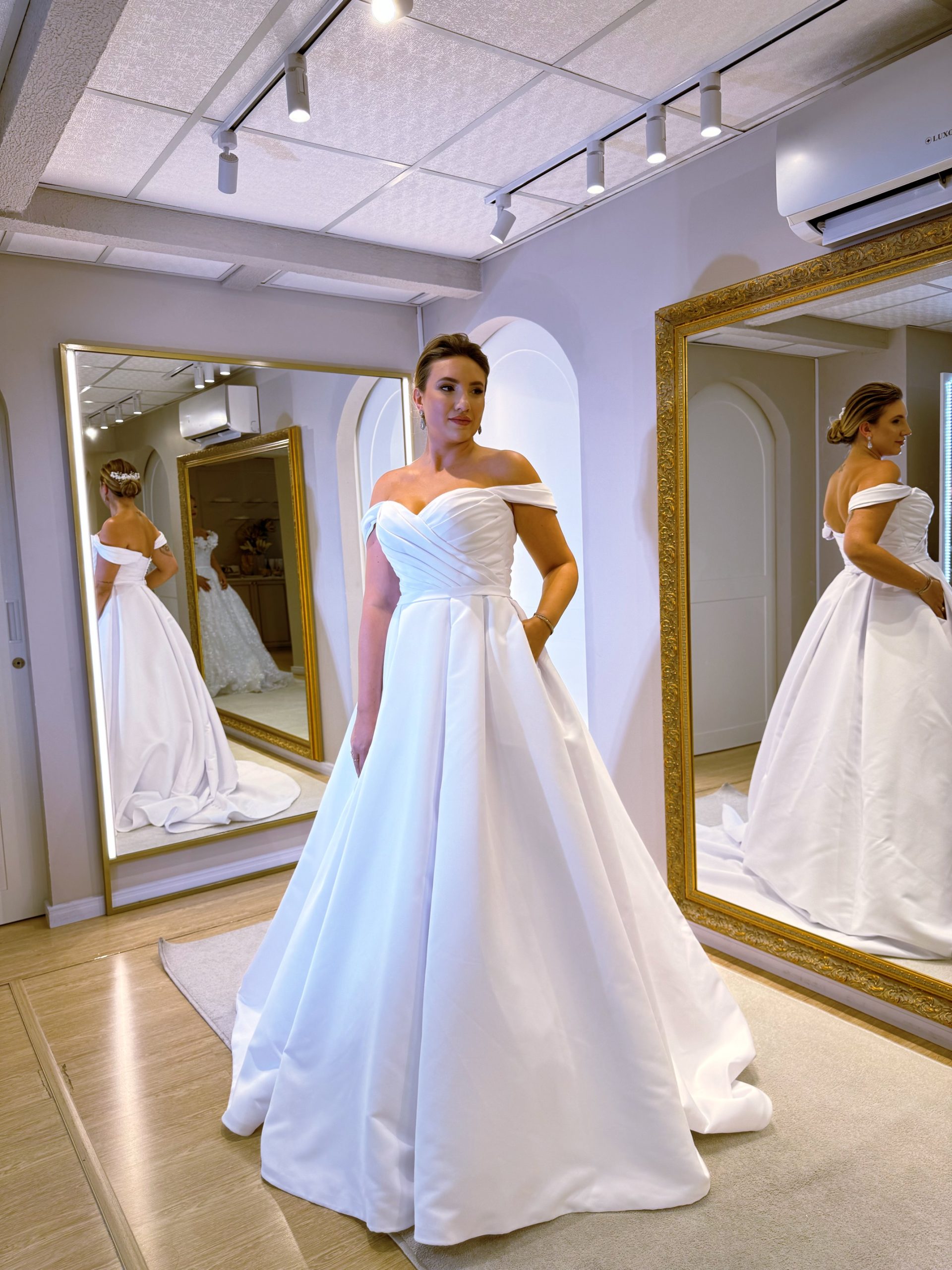 Vestido Tomara que caia em Micado, uma proposta romântica e refinada. Perfeito para Noivas que desejam um visual limpo, mas impactante.