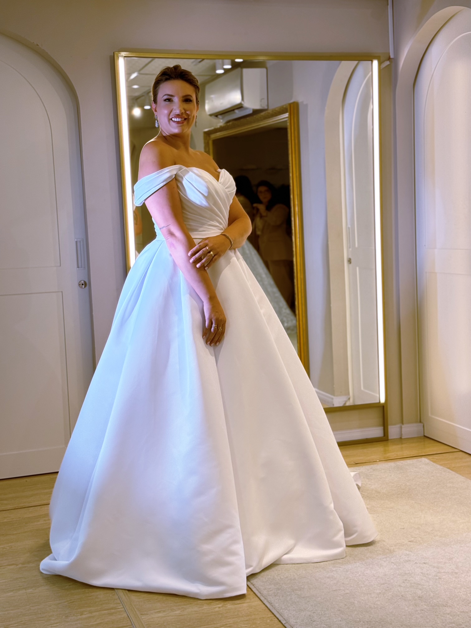 Uma verdadeira celebração ao luxo artesanal, com decote ombro a ombro, saia rodada valorizando a silhueta com elegância, o toque … Read More