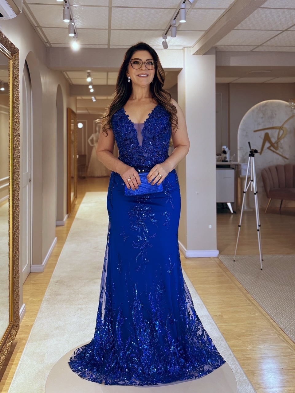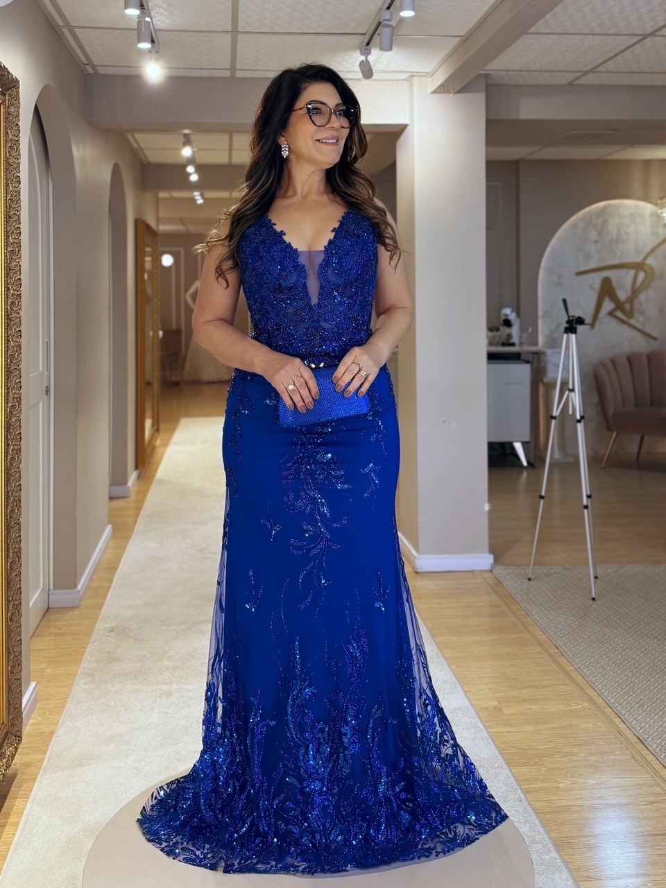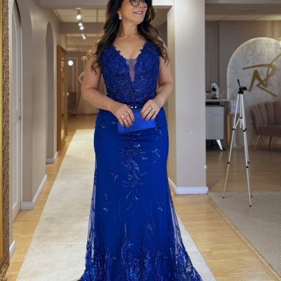 VESTIDO AZUL BORDADO EM PEDRARIAS | LINHA PREMIUM